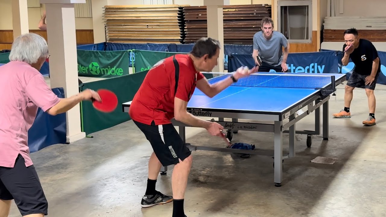 The “challenge system” and the club’s 7 tables help make it so you don’t wait too long to get on a table — even if you get to the club when coaching is taking place. Be sure to ask the players on a table the status of their match and how many people are challenging. Try to ask in between points, never during a rally.